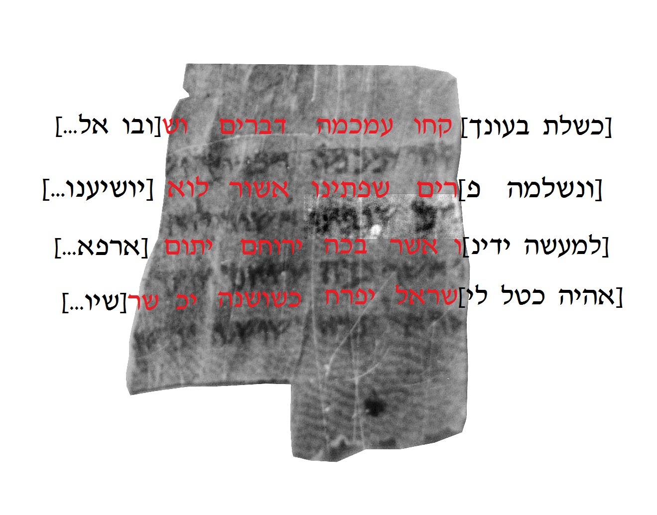 לא תאמינו אבל התמונה הזו מאפשרת לנו לתפוס את הזייפנים האמיתיים, גם למעלה מ-2.000 שנים לאחר שהקלף הזה נכתב על ידי אנשי כת בדלנית. רואים כאן באופן ברור כי הנוסח הוא "פרים שפתינו".